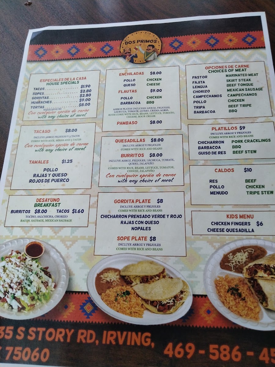 Welcome to Dos Primos Taqueria & Restaurant, a culinary gem located at 335 S Story Rd, Irving, TX. This vibrant eatery specializes in authentic Mexican fare that delights the palate.